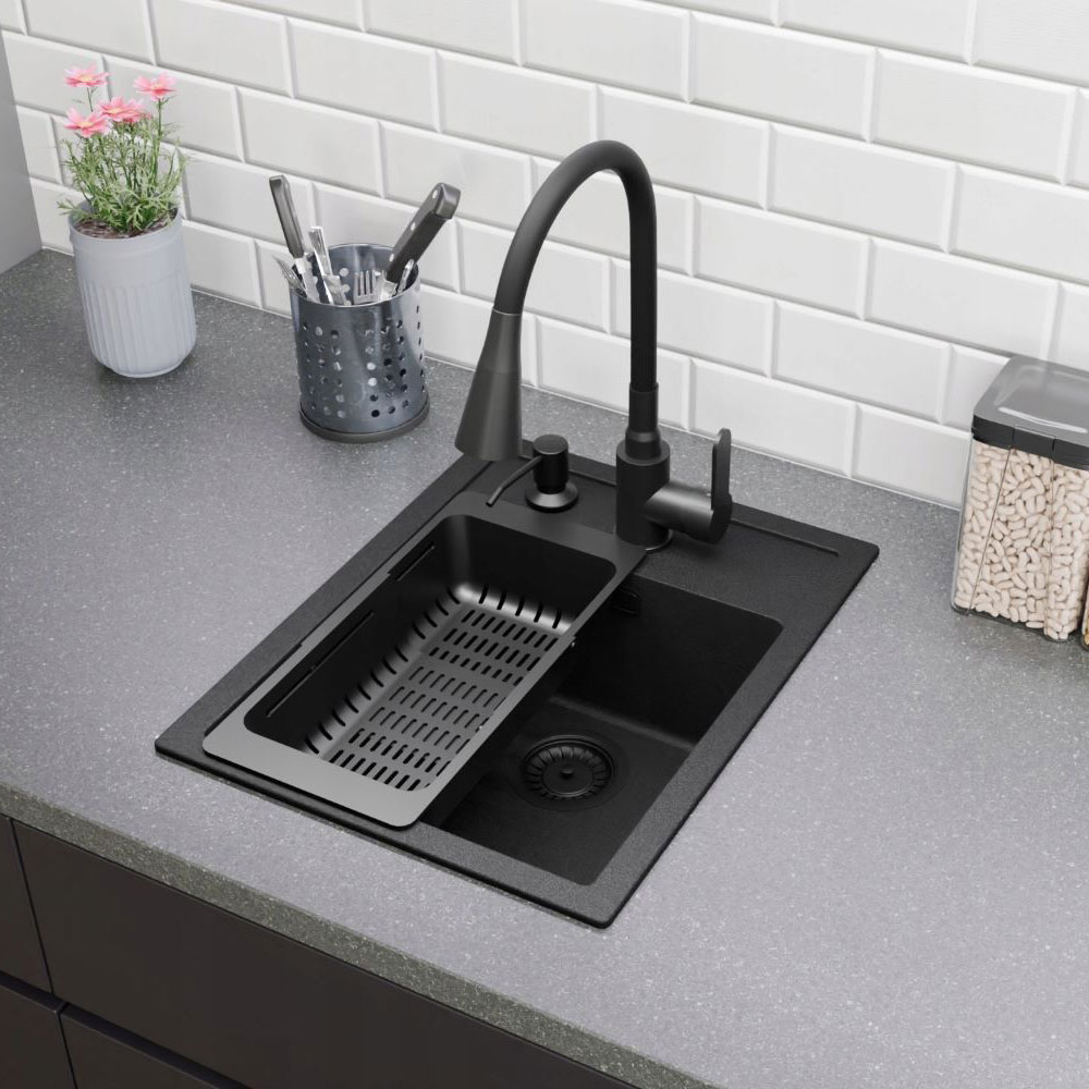 ● Zlewozmywak FRANKE Sirius SID 610-36 Tectonite, jednokomorowy, w kolorze czarnym, do szafki od 45 cm. Praktyczny element wyposażenia kuchni. Wyprodukowany przez szwajcarskiego producenta - Franke. Wybierając zlewozmywak z innowacyjnego materiału Tectonite® sięgasz po nowoczesność, funkcjonalność oraz swobodę działania w kuchni. Zlewozmywaki Tectonite® to nowa generacja zlewozmywaków odpornych na wysokie temperatury, uderzenia, zadrapania i powstawanie plam. Materiał Tectonite® jest higieniczny, lekki, delikatny w dotyku i ekologiczny.