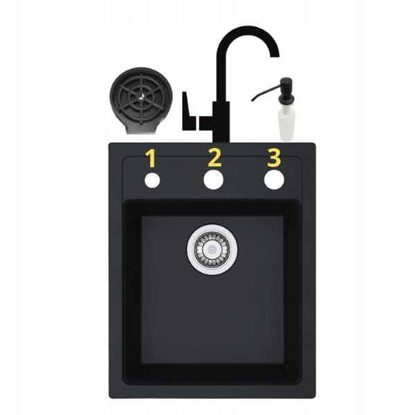 Stojąc przodem do zlewozmywaka przewiercimy 2 dodatkowe otwory pod następujące akcesoria: