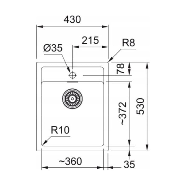 - Otwór 35 mm otwór jest już fabrycznie przewiercony w zlewozmywaku pod baterię,