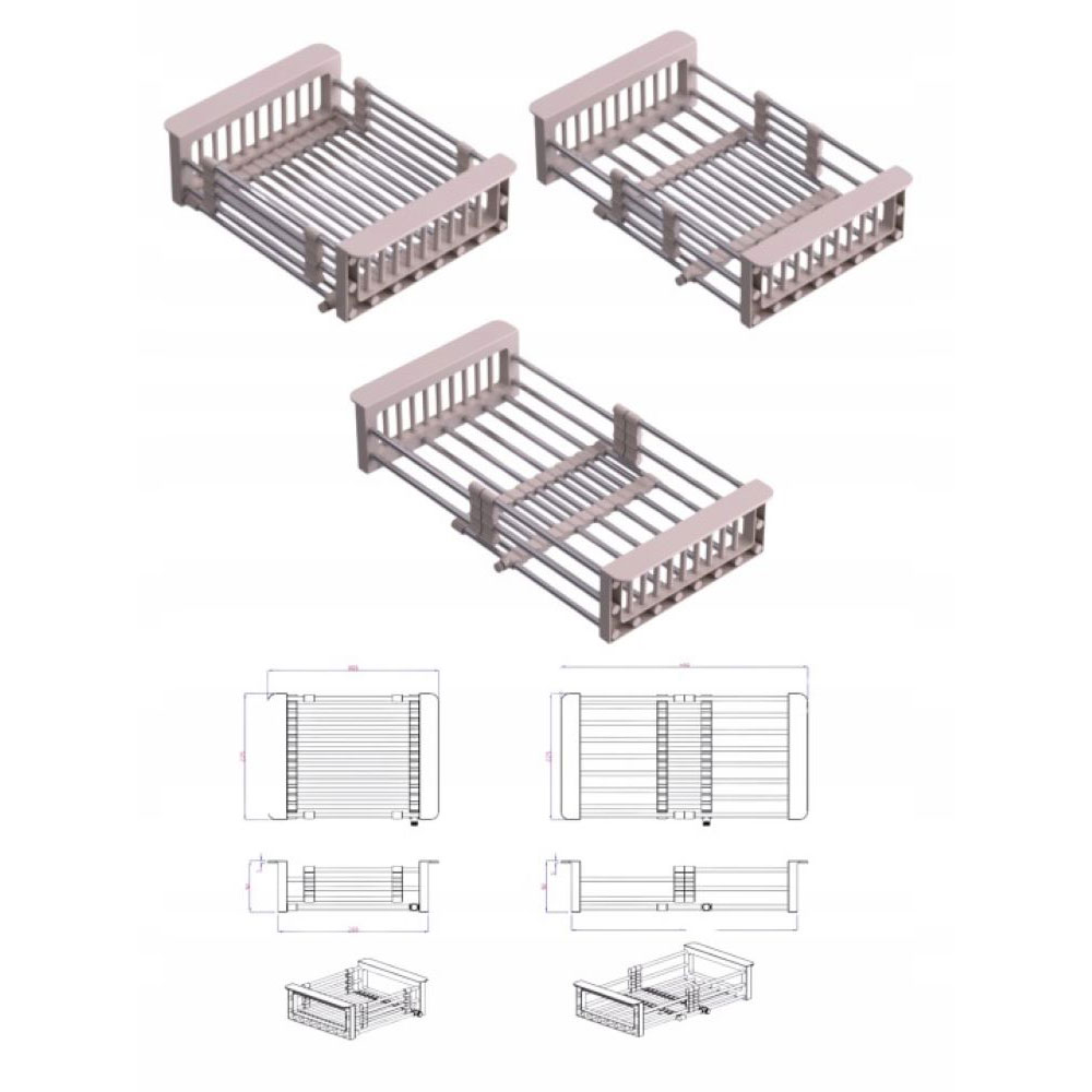 ● Ociekarka teleskopowa. Wymiary (produkt złożony): 29 cm x 19,5 cm x 9 cm. Maksymalne wymiary (po rozłożeniu): 41,5 cm x 19,5 cm x 9 cm cm.