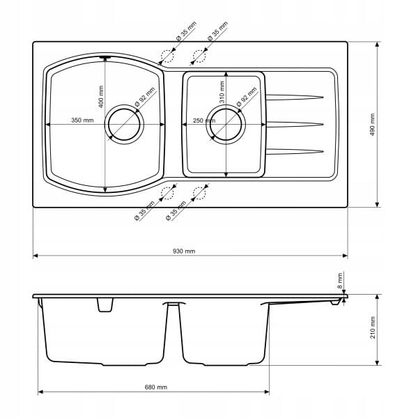 | Wymiary zewnętrzne | 930 mm x 490 mm |