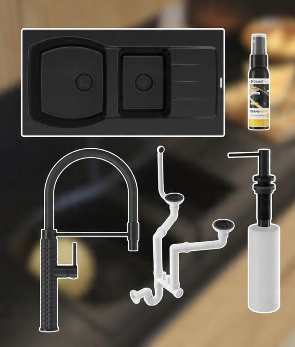 Zestaw - zlewozmywak granitowy Master - bateria - dozownik - syfon