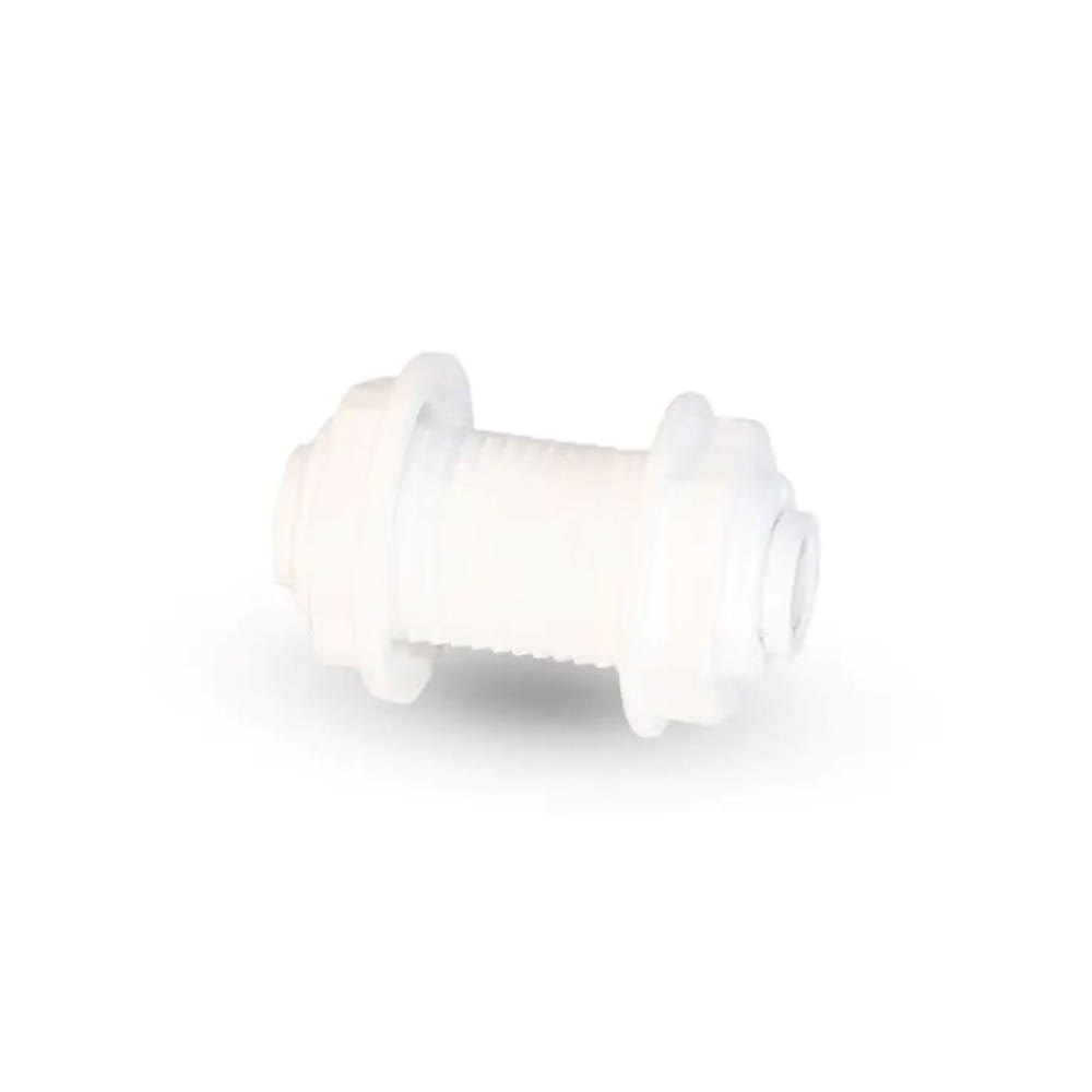 Złączka prosta (grodziowa) wykonana z polipropylenu, wyposażona w szybkozłącza 1/4”.