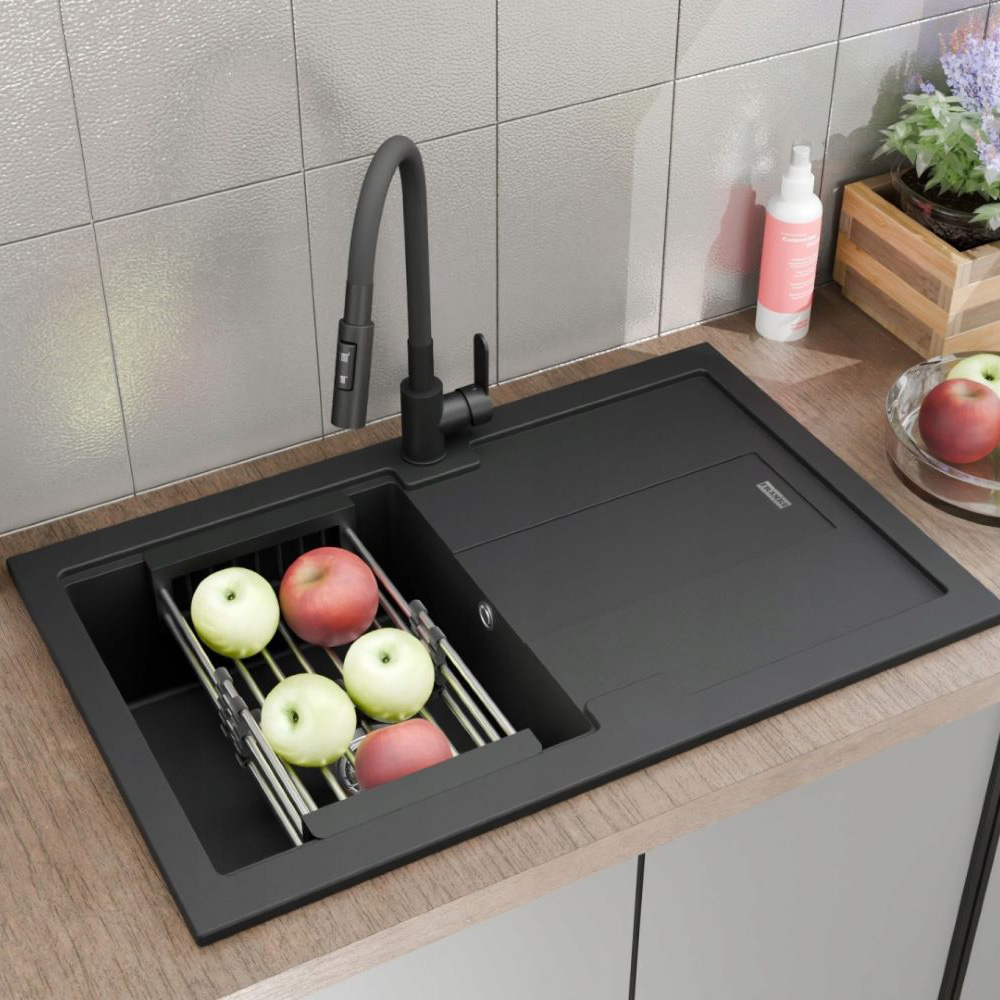 Model Bellini BLG 611-78 cechuje się wysoką odpornością na zarysowania, uderzenia i krótkotrwałe działanie temperatury do 280°C. Zlewozmywak jest odwracalny co pozwala na elastyczny montaż w zależności od preferencji (komora po lewej stronie lub po prawej).