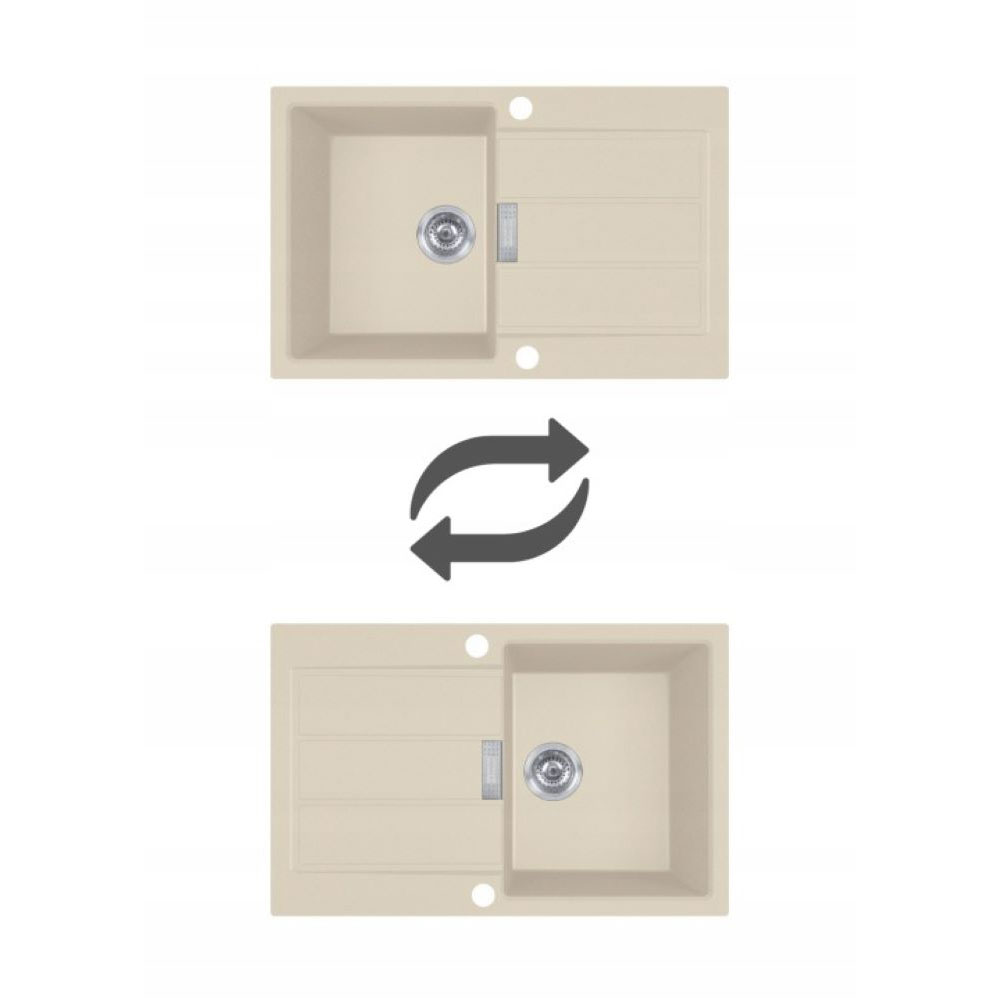 Zlewozmywak jest odwracalny. Otwory w zlewozmywaku pod baterię i pokrętło od syfonu automatycznego są już nawiercone fabrycznie.