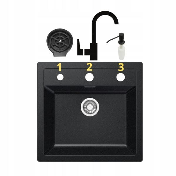 Stojąc przodem do zlewozmywaka przewiercimy 2 dodatkowe otwory pod następujące akcesoria: