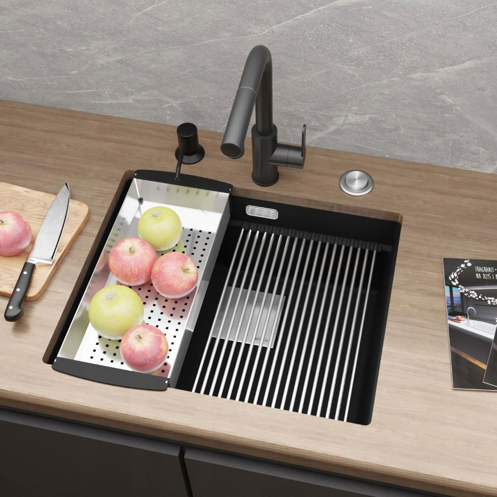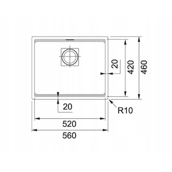 Mały promień zaokrąglenia komory (10 mm) sprawia, że zlewozmywak wygląda nowocześnie i łatwo jest go utrzymać w czystości. Duża pojemność komory ułatwia mycie naczyń i innych dużych przedmiotów, takich jak blachy do pieczenia.
