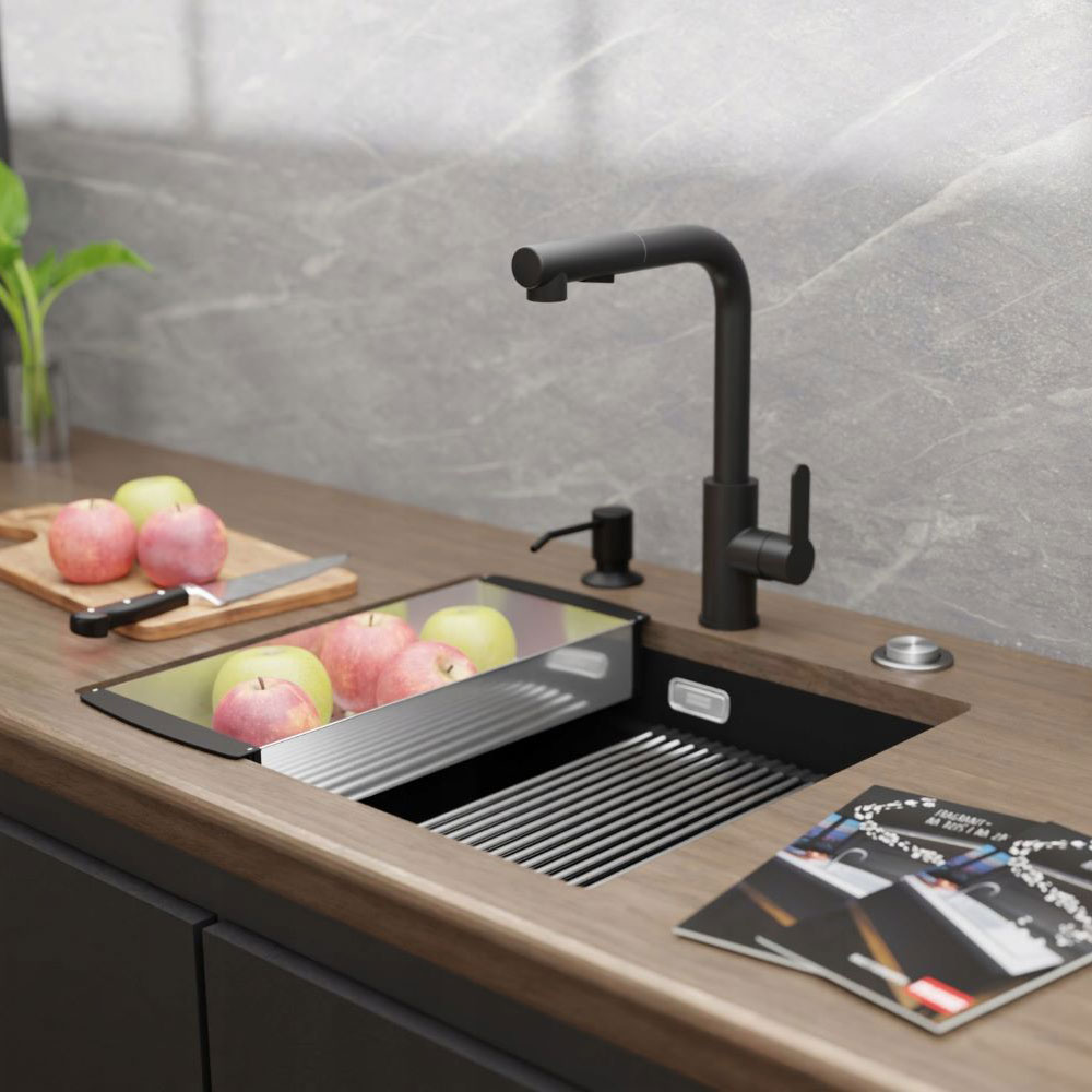 ● Bateria Ebro to rodzaj baterii zlewozmywakowej wyposażonej w specyficzną wylewkę, którą można wyciągnąć z uchwytu i używać jak prysznica. Pozwala to na bezproblemowe skierowanie strumienia wody w różne kierunki i miejsca, co jest szczególnie istotne i przydatne w kuchni. Słuchawka baterii posiada funkcję dwóch trybów strumienia wody (natryskowy i standardowy), co potęguje wszechstronność modelu i przekłada się na wygodę podczas użytkowania. W komplecie wszystko co potrzebne do montażu.