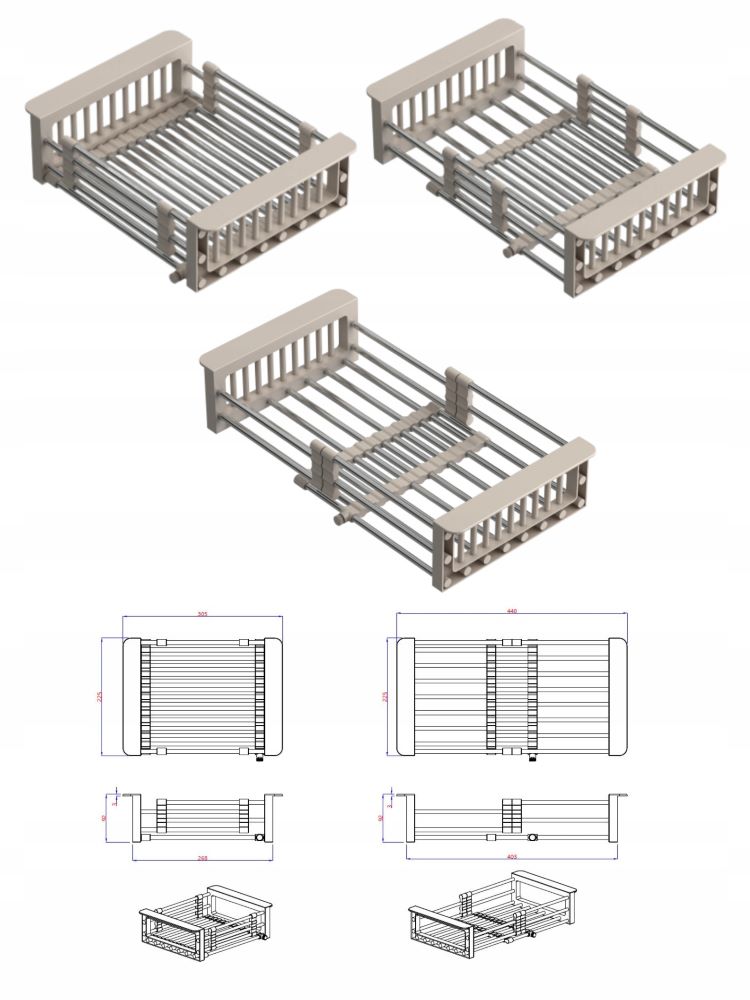 ● Ociekarka teleskopowa koszyk stalowy do zlewu. Dzięki regulacji koszyk pasuje do większości zlewozmywaków dostępnych na rynku. Materiały użyte podczas produkcji gwarantują trwałość i solidność produktu. Możliwość regulacji: 30,5 cm – 44 cm.