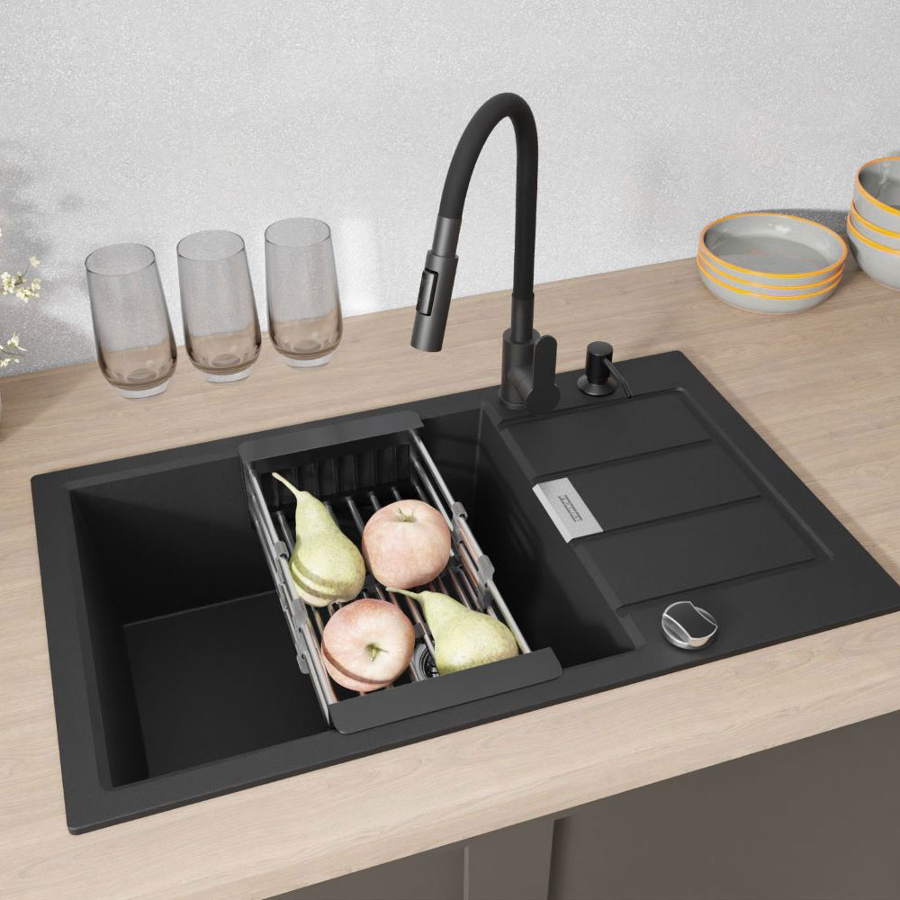 ● Bateria kuchenna RENO – nowoczesny design i funkcjonalność. Postaw na baterię kuchenną czarną RENO, która łączy elegancję z praktycznym zastosowaniem. Elastyczna wylewka 360° zapewnia pełną swobodę ruchu i wygodę przy zlewach jedno- i dwukomorowych. Dzięki dwóm trybom strumienia – laminarnemu i prysznicowemu – łatwo dopasujesz przepływ wody do swoich potrzeb. Solidne materiały – mosiądz, chrom i wysokiej jakości tworzywo.