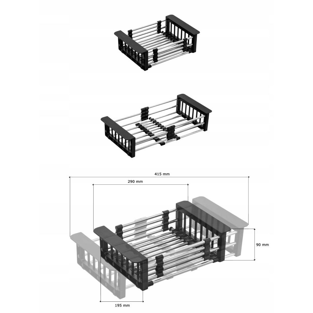 ● Ociekarka teleskopowa koszyk stalowy do zlewu. Dzięki regulacji koszyk pasuje do większości zlewozmywaków dostępnych na rynku. Materiały użyte podczas produkcji gwarantują trwałość i solidność produktu. Wymiary (produkt złożony): 29 cm x 19,5 cm x 9 cm, maksymalne wymiary (po rozłożeniu): 41,5 cm x 19,5 cm x 9 cm.
