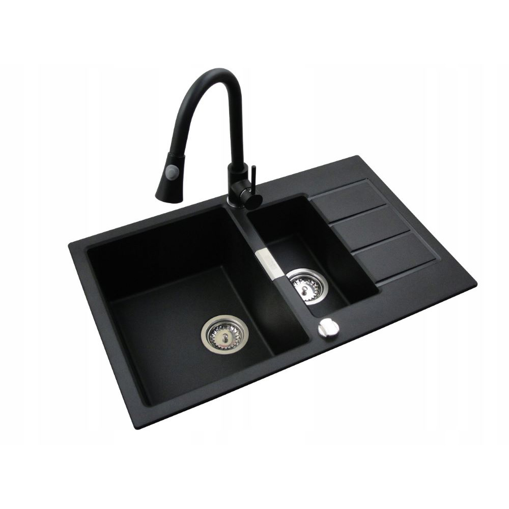 ● Zlewozmywak FRANKE Sirius SID 651-78 Tectonite, półtorejkomorowy, w kolorze czarnym, do szafki od 60 cm. Praktyczny element wyposażenia kuchni. Wybierając zlewozmywak z innowacyjnego materiału Tectonite® sięgasz po nowoczesność, funkcjonalność oraz swobodę działania w kuchni. Zlewozmywaki Tectonite® to nowa generacja zlewozmywaków odpornych na wysokie temperatury, uderzenia, zadrapania i powstawanie plam. Materiał Tectonite® jest higieniczny, lekki, delikatny w dotyku i ekologiczny.