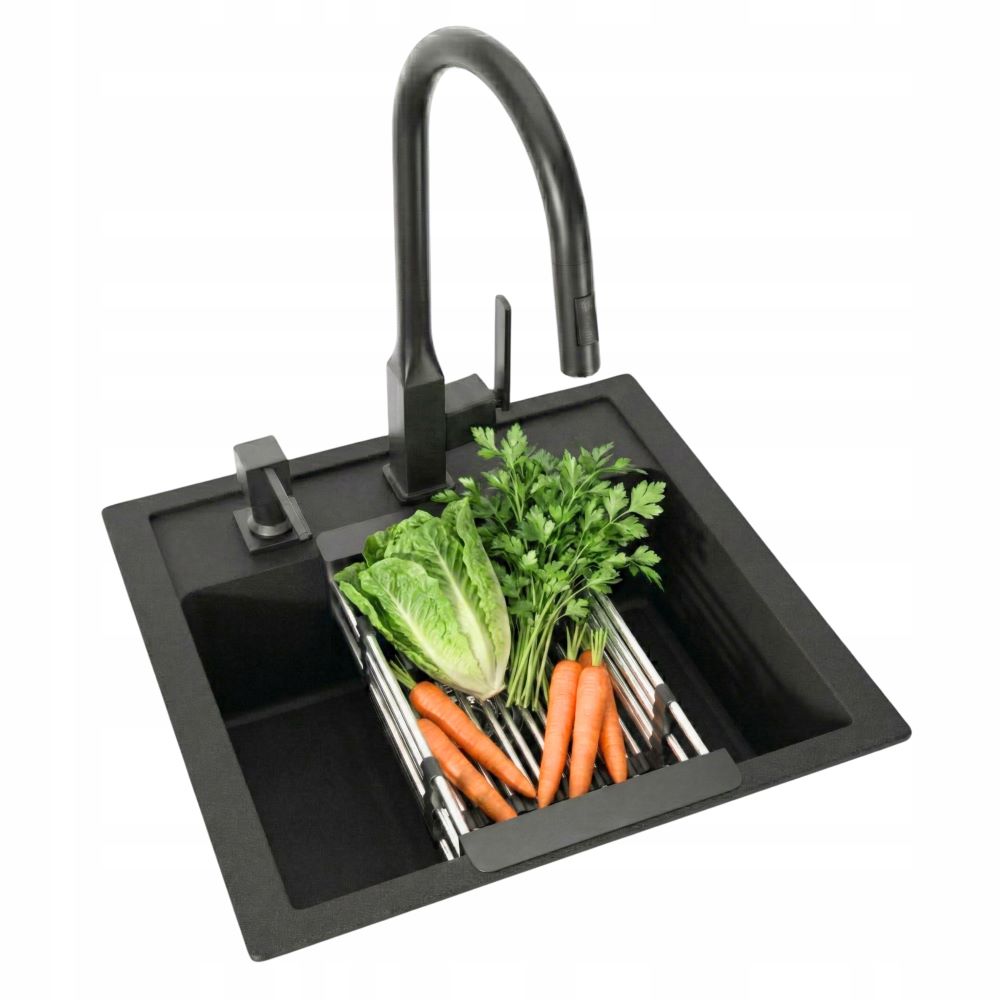 ● Ociekarka teleskopowa koszyk stalowy do zlewu. Dzięki regulacji koszyk pasuje do większości zlewozmywaków dostępnych na rynku. Materiały użyte podczas produkcji gwarantują trwałość i solidność produktu. Wymiary (produkt złożony): 29 cm x 19,5 cm x 9 cm, maksymalne wymiary (po rozłożeniu): 41,5 cm x 19,5 cm x 9 cm.