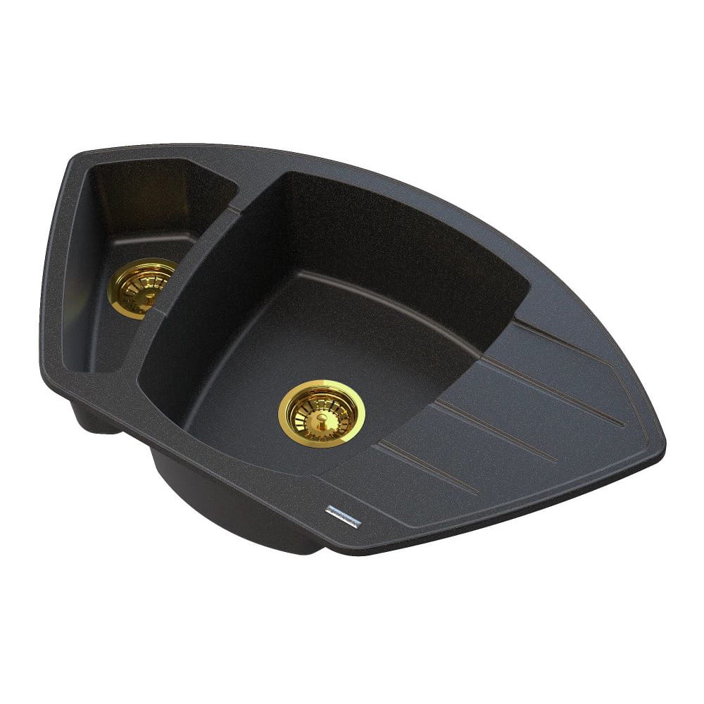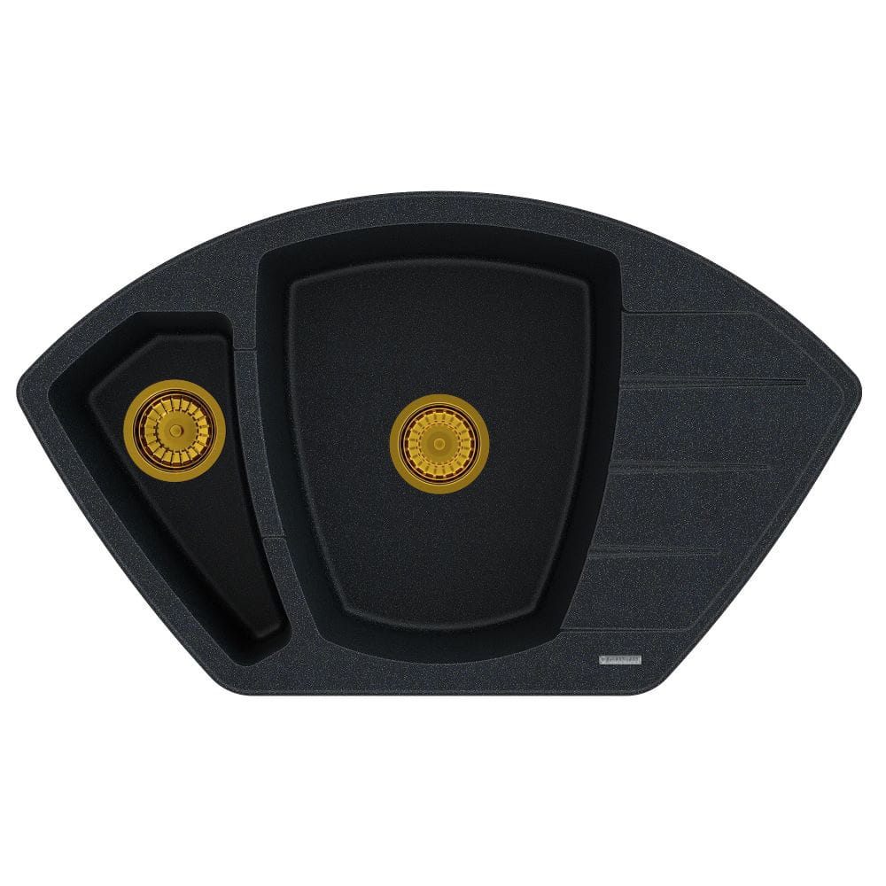 Zlewozmywak dwukomorowy granitowy Compact czarny z drobinkami złotego z syfonem