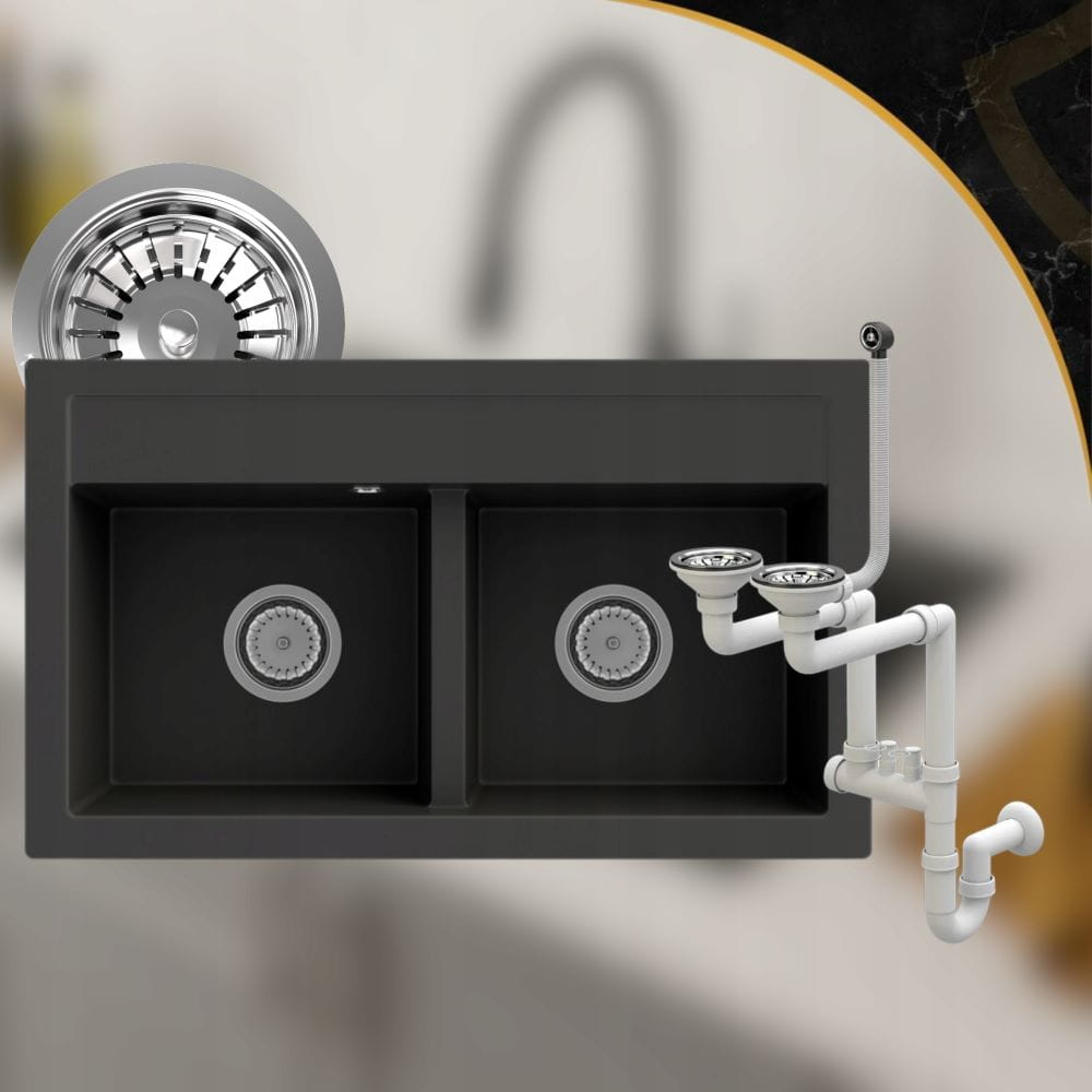 Zlewozmywak granitowy dwukomorowy Duet - syfon