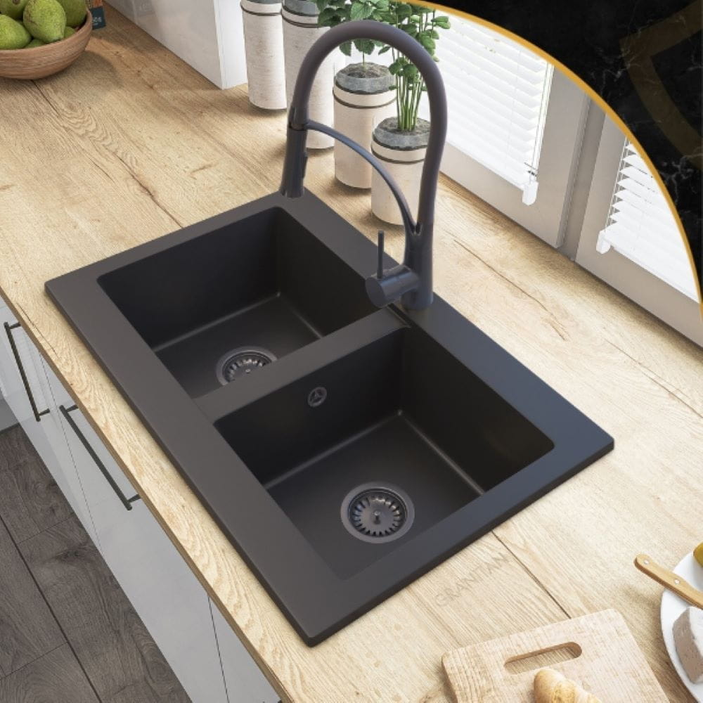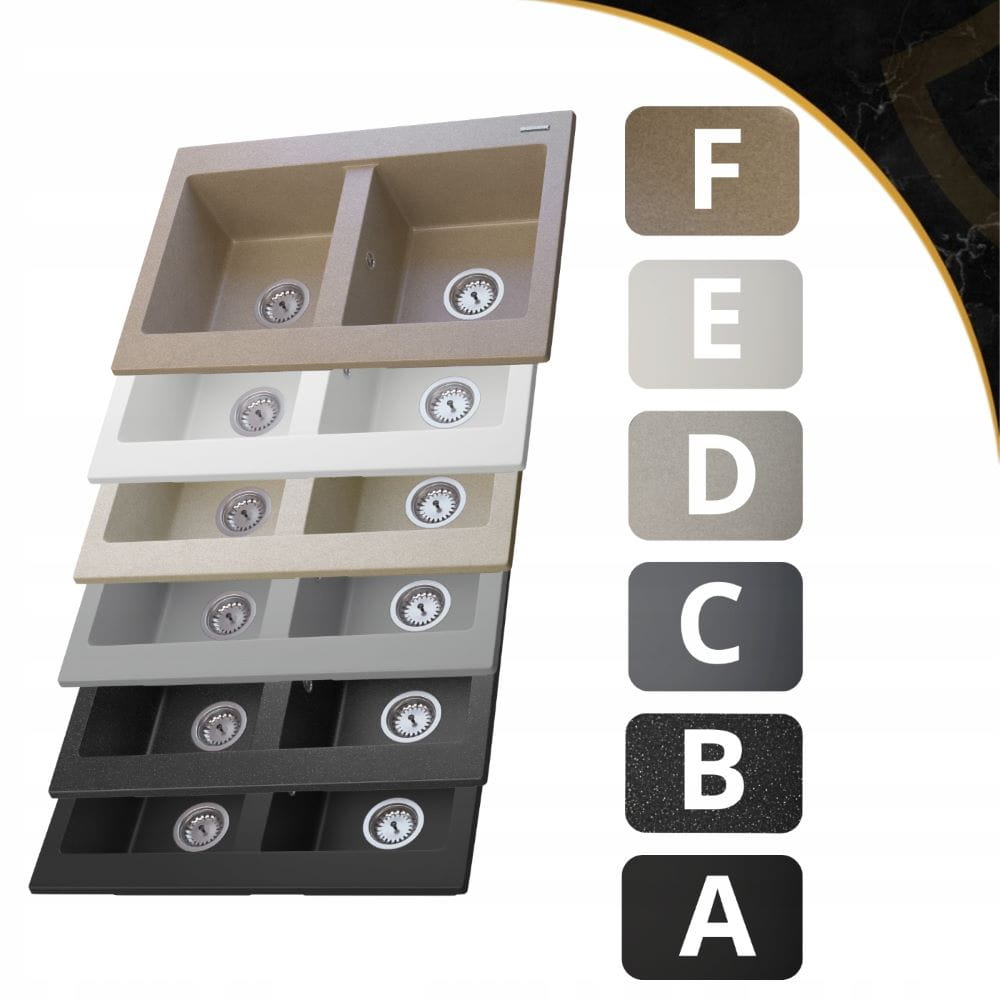 Zlewozmywak granitowy dwukomorowy kuchenny Verso - syfon