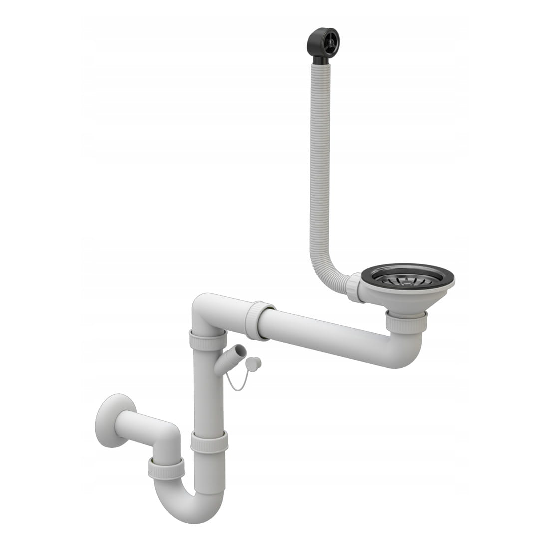 Możliwość dokupienia przyściennego syfonu manualnego z prostokątnym przelewem z możliwością podłączenia zmywarki lub pralki (oszczędność przestrzeni) lub syfonu automatycznego w trzech kolorach do wyboru: chrom, złoty lub czarny.