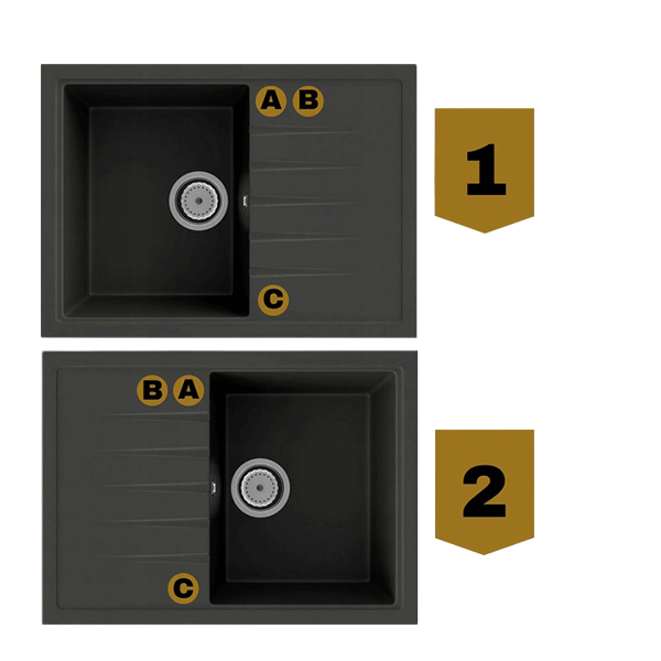 Otwory w zlewie nawiercamy bezpłatnie na życzenie klienta według wzoru.