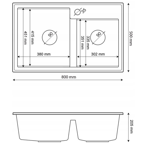 IKAR, to wysokiej jakości granitowy, dwukomorowy zlewozmywak do szafki od 80 cm. Wyprodukowany przez polskiego producenta. Gwarancja najwyższej wytrzymałości, dzięki specjalnej mieszance granitan plusR – odpornej na przebarwienia i zarysowania. Cechuje go wysoka odporność na gwałtowne zmiany temperatury (-18+280 stopni) oraz matowa, łatwa do czyszczenia powierzchnia.