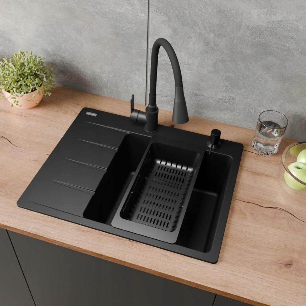 Zlewozmywak j Franke CNG 611-62 TL KP czarny mat - bateria - dozownik - koszyk