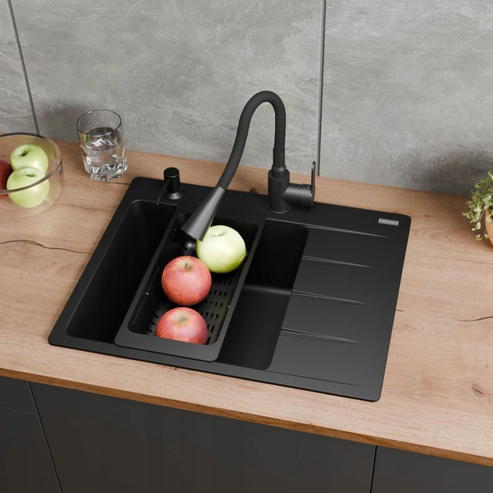 Zlewozmywak j Franke CNG 611-62 TL czarny mat bateria - dozownik - koszyk
