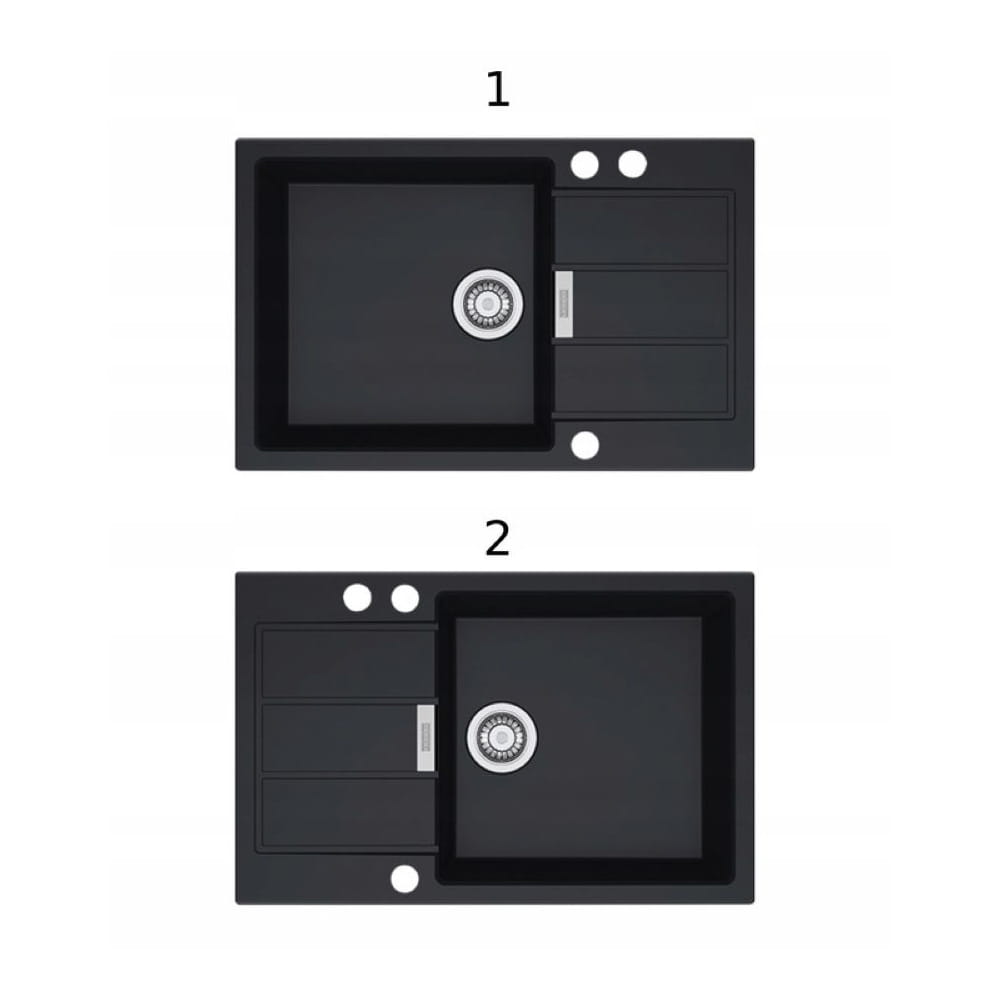 Zlewozmywak posiada fabrycznie nawiercone 3 otwory. W konfiguracji pod baterię, dozownik, oraz pokrętło od syfonu automatycznego. Po zakupie prosimy o podanie czy Państwo sobie życzą stronę komory: lewą czy prawą.